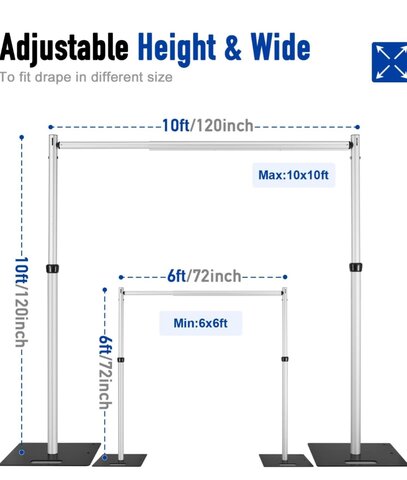 Heavy duty stand for banners, themed backgrounds or drapes Holds 50lbs MAX. Square base can be anchoreds down for extra support.